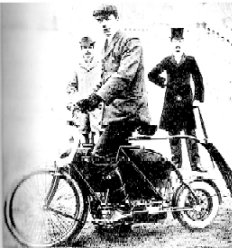 | 1887 | Millet | construit un bicycle avec un moteur à pétrole 5 cylindres dans la roue arrière équipé d'un allumage électrique par pile Bunsen. | |